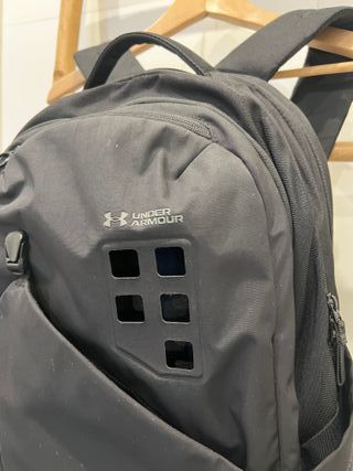 Mochila de la marca Under Armour en color negro. Tiene gran capacidad y muchos compartimentos para llevar organizadas tus cosas - Compartimento independiente y acolchado para ordenador y tablet - Compartimento princial de gran tamaño - Compartimento frontal con organizador para pequeños objetos - Bolsillo pequeño forrado - 2 Bosillos laterales portabotellas - Bolsillo amplio frontal para llevar alguna prenda - Sistema UA LEV en la espalda para mayor comodidad y transpiración - Correas ajustables - Capacidad total 42L