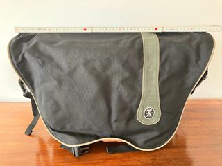Bolso bandolera de gran tamaño con un diseño funcional. - Color principal negro/gris oscuro, interior en naranja. - Cierre de solapa. - Muchos compartimentos interiores, con cierres de velcro o cremallera. - Compartimento especial para ordenador. - Correa ajustable. - Accesorio acolchado para el hombro.
