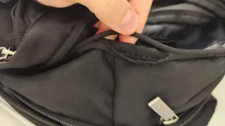Mochila para ordenador portátil de la marca Tech Air. - Color negro. - Compartimento acolchado para portátil (foto 3) - Bolsillo para llevar reproductor de música con auriculares (foto 4) Defectos (fotos 5 y 6): - Cremallera del bolsillo externo pequeño rota (el arreglo cuesta 3€) - Tela del interior en la parte superior ligeramente rasgada