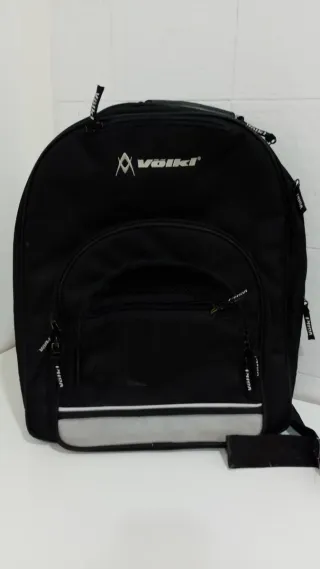 Mochila Völki de color negro, con 2 compartimentos grandes y 2 pequeños. - Compartimento principal espacioso. - Bolsillos frontales con cremallera. - Asas acolchadas y ajustables. - Asa superior para colgar o transportar cómodamente. Resistente. Especial para ordenador portátil, estructura firme. Medidas 41x32x16cm aproximadamente. Tiene una pequeña mancha de pintura poco visible.