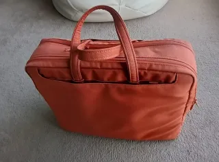 Práctica bolsa para transportar tu ordenador portátil y documentos importantes. Cuenta con un asa superior para llevarla cómodamente en la mano y una correa ajustable para el hombro. Estado como muestran las fotos. Ligeros defectos, ver foto portada. Precio muy bajo por eso - Compartimento principal espacioso. - Bolsillo frontal con cierre. - Logo de Toshiba visible.