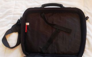 Práctica bolsa para transportar el ordenador portátil. Varios compartimentos interiores. Asas de transporte y bandolera. Casi sin uso.