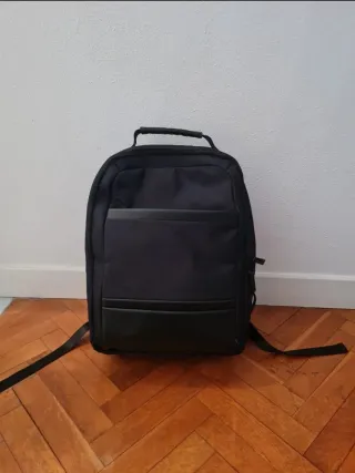 Compartimento principal extensible con cremallera y cierre frontal. Apartado independiente reforzado para ordenador de 15.6 pulgadas. Bolsillo frontal destinado a llaves y pasaporte. Dos bolsillos laterales para botellas. Bolsillo interior con cremallera para cargador y ratón. Fabricada en Vietnam. Dimensiones Tamaño: 40 x 30 x 10 cm Capacidad: 17,6 litros Peso: 550 gramos. Se ha usado para ie a la piscina . Esta en muy buen estado. La vendo por que me han regalado otra y esta no la voy a usar. Por dentro está en perfecto estado. El bolsillo exterior se aprecia dos cortes en la fotos. Los hizo mi mascota en un descuido.