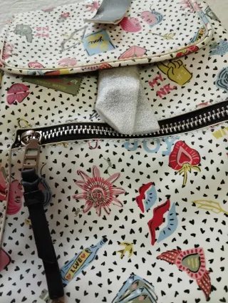 Mochila Parfois con un divertido estampado. Correa ajustable. Con etiquetas, a estrenar Hago envíos