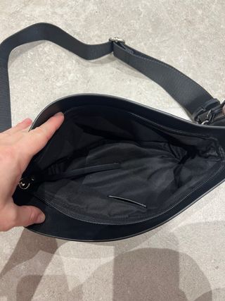 Bolso de cuero de la marca Parfois elegante y versátil. Dispone de cierre tipo hebilla y en su interior dispone de un bolsillo extra. La correa es ajustable, pudiéndolo colgar al hombro, usarlo de mochila con las correas accesorias o usarlo como bolso de mano. Se le ha dado algún uso y presenta una pequeña marca en el interior de uno de los compartimentos (no se notan al estar en la parte inferior del compartimento interior). El resto del bolso está en muy buen estado.