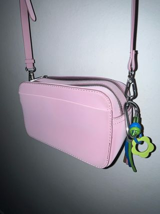 Esta elegante bandolera Parfois en color rosa pastel es el complemento perfecto para el día a día. Con un tamaño práctico de 30 x 20 cm, ofrece espacio suficiente para llevar lo esencial sin perder comodidad. Su diseño rectangular, acabado suave y costuras visibles le dan un estilo moderno y femenino, ideal para combinar con cualquier outfit. Cuenta con correa ajustable, permitiendo usarla al hombro o en modo crossbody para mayor comodidad. El doble compartimento con cierre de cremallera mantiene tus objetos siempre organizados y seguros. Incluye además un llavero/charm decorativo de flor que aporta un toque divertido y personal.