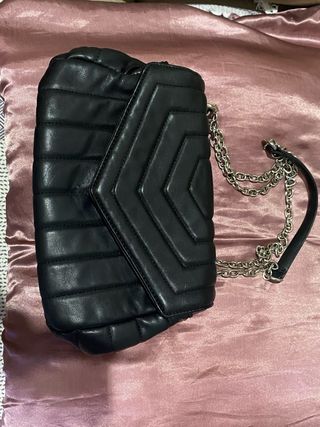 Bolso negro de Parfois con un diseño acolchado y moderno. - Acolchado con diseño de líneas y rombos. - Cadena metálica plateada. - Cierre de solapa.