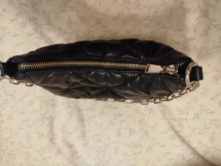 Bolso imitación piel con cadena para colgar Tiene varios compartimentos en el interior y otro que cierra con corchete en la parte trasera Sin estrenar y con etiquetas Largo 30cm Lo compré en rebajas porque me pareció muy chulo, pero como nunca uso bolsos, no lo he estrenado