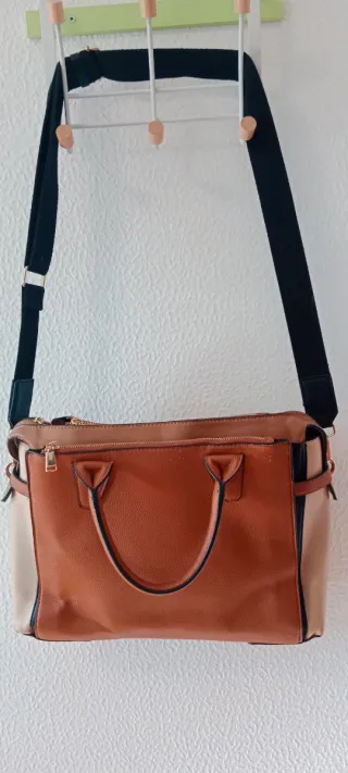 Maletín de Parfois con un diseño elegante y práctico. - Combinación de colores beige y marrón. - Asa corta para llevar en mano. - Correa larga ajustable para el hombro. Cuenta con muchos compartimentos y bolsillos internos, para llevar el portátil y demás elementos. Está en buen estado general