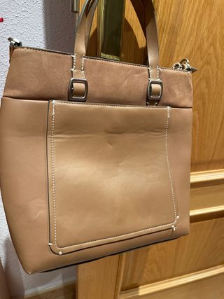 Bolso de la marca Parfois en un bonito tono tierra. Incluye dos correas para llevarlo de diferentes maneras. - Diseño acolchado. - Detalle de logo metálico.