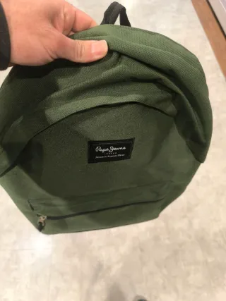 Mochila Pepe Jeans en color verde, a estrenar. - Compartimento principal espacioso. - Bolsillo frontal con cremallera. - Correas ajustables para mayor comodidad. - Etiqueta original incluida.