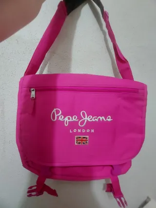 Bandolera grande rosa de Pepe Jeans London. Cabe portátil sin problema. Tiene varios bolsillos con cremallera. Está en muy buen estado, solo el asa tiene algo de desgaste del uso pero funciona perfectamente. Entrega en mano.