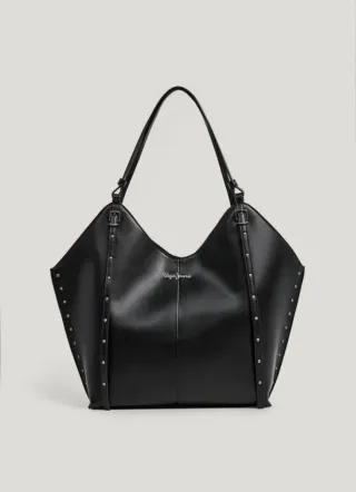 Bolso de hombro Pepe Jeans en color negro. Presenta un diseño moderno con tachuelas decorativas. - Cierre de cremallera. - Asa larga. - Detalle de borla colgante.