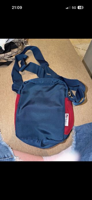 Bolso cruzado de la marca Pepe Jeans con un diseño moderno y práctico. - Combinación de colores azul y rojo. - Parches decorativos. - Correa ajustable.