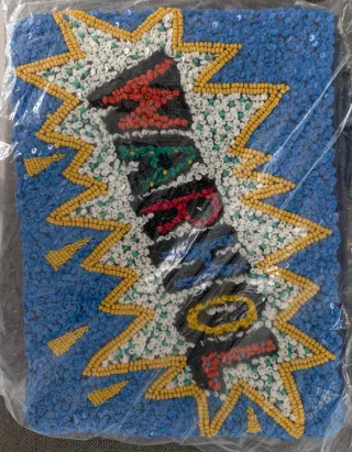 Bolso de mano con diseño de rayas en tonos beige y azul y por otro lado warhol. Nuevo a estrenar con etiquetas. Precio negociable.