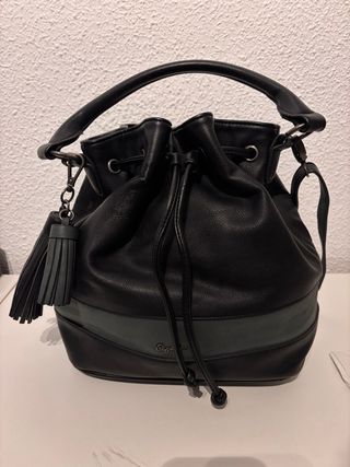 Bolso estilo bombonera de la marca Pepe Jeans. - Altura de 28 cm y 40 cm de ancho. - Combinación de colores negro y verde.