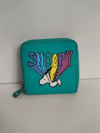 Cartera con diseño de Snoopy de Pull and Bear. - Color principal verde azulado. - Estampado multicolor con Snoopy y el logo. - Cierre de cremallera.