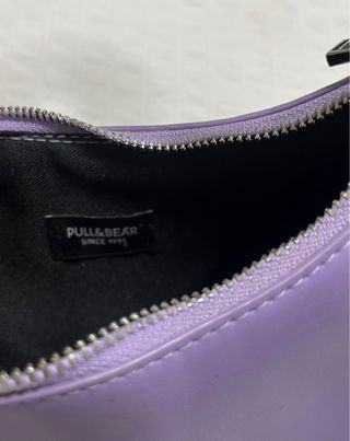 Bolso de hombro de Pull and Bear en color lila. Se ha usado una vez. - Diseño curvo. - Cierre de cremallera. - Asa ajustable con detalle metálico.