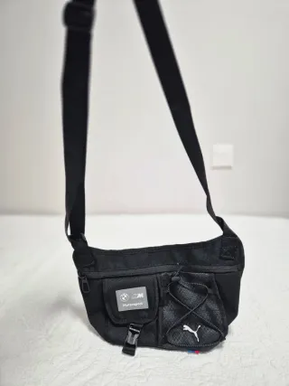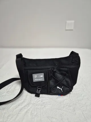 Riñonera o bandolera de la marca Puma con detalles de BMW Motorsport. Es un accesorio versátil y moderno. - Diseño en color negro. - Compartimentos prácticos. - Correa ajustable.