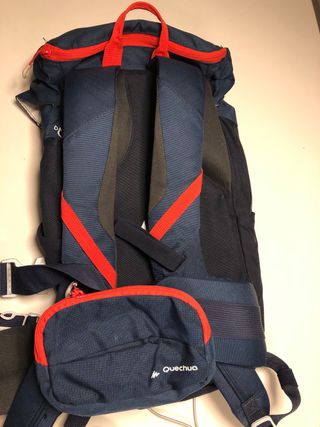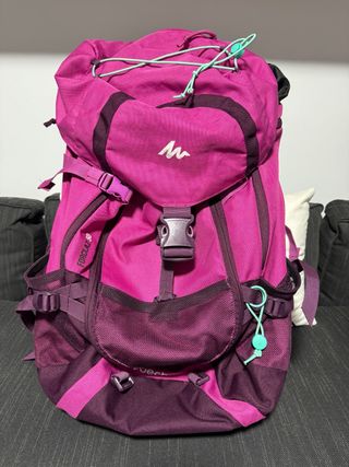 Mochila de montaña de la marca Quechua. - Compartimento principal con cierre de cordón. - Bolsillo frontal con malla. - Correas ajustables para mayor comodidad.