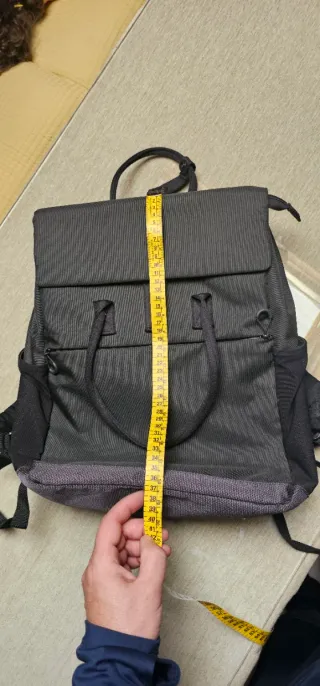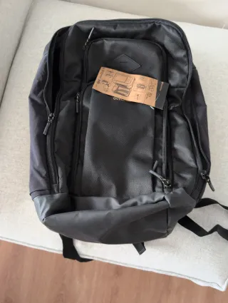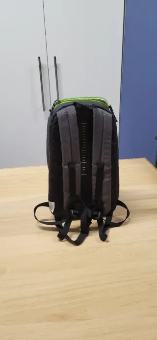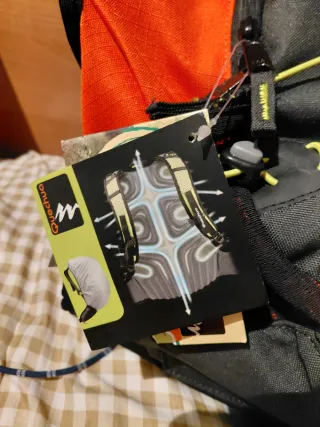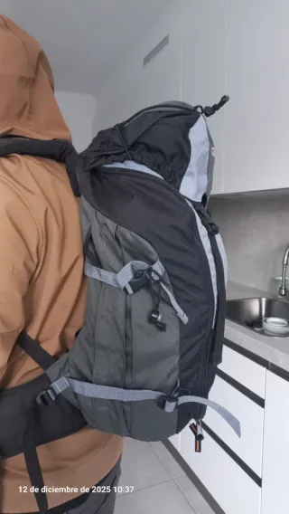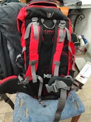 Mochila grande con un diseño moderno y funcional. - Compartimento principal espacioso. - Bolsillos exteriores para acceso rápido. - Correas ajustables para mayor comodidad. - Sistema de ventilación en la espalda. Utilizada solo una vez. Capacidad más de 30 litros, capacidad adecuada para ir de campamento.