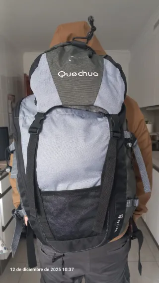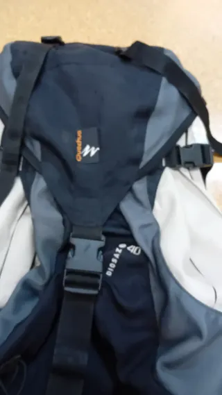 Mochila de senderismo de la marca Quechua.50 litros, Tiene alguna mancha que no se va. Buen estado y múltiples bolsillos. - Color gris. - Compartimento principal espacioso. - Bolsillos exteriores. - Correas ajustables.