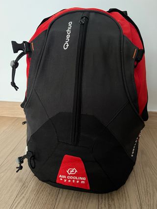 Mochila de montaña trekking Quechua con sistema Air Cooling. - Capacidad de 25 litros. - Diseño en color rojo y negro. - Ideal para trekking y senderismo. - Sistema de espalda Air Cooling. - Correas y enganches para bastones y piolets. - Multiples bolsillos. - Bolsillos en cinturón. - Perfecto estado.