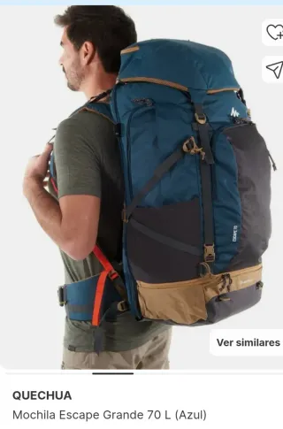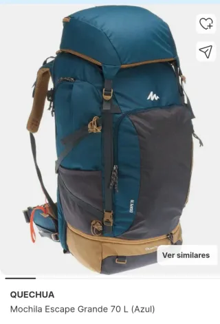 Vendo mochila de trekking/backpacker marca Forclaz de 50 litros, color azul, ideal para viajes largos, trekking o escapadas de varios días. - Gran capacidad (50L) - Muchos bolsillos y compartimentos, muy práctica para organizar todo - Cinturón lumbar acolchado que reparte el peso y hace que sea muy cómoda de llevar - Espalda y tirantes ergonómicos - Resistente y funcional, perfecta para backpacking Está en muy buen estado, lista para usar. La vendo porque ya no la utilizo.
