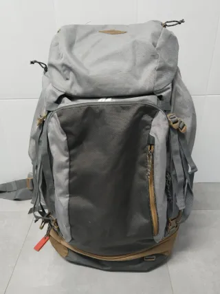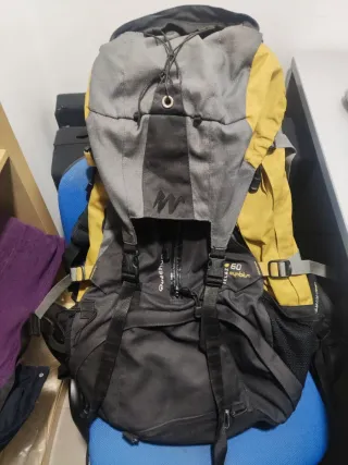 Mochila de senderismo y acampada Quechua Forclaz 60, con apertura frontal para un acceso comodísimo Muy dura y resistente para llegar al fin del mundo. Las cremalleras, las costuras y los clips de enganche están en perfecto estado