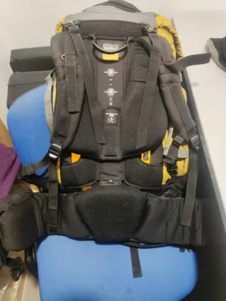 Mochila de trekking de gran capacidad, ideal para tus aventuras al aire libre. - Diseño bicolor en gris y amarillo. - Compartimento principal espacioso. - Múltiples bolsillos para organización. - Correas ajustables para mayor comodidad.