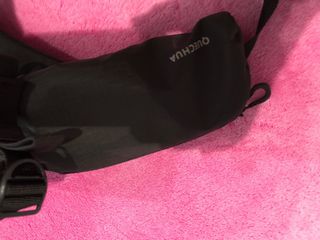 Riñonera práctica y versátil de la marca Quechua. - Color negro. - Cierre de cremallera. - Correa ajustable.
