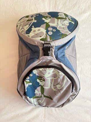 Mochila multiusos de la marca Quechua con un diseño alegre y floral. - Color principal verde vibrante. - Estampado de flores blancas y detalles en marrón. - Tirantes ajustables para mayor comodidad.