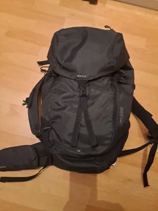 Mochila Quechua de 50 litros, en azul y gris. Está en buen estado. - Diseño cómodo y funcional. - Sistema de ajuste Forclaz Easyfit. - Ideal para senderismo y actividades al aire libre.