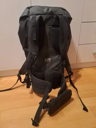 Mochila gran capacidad para montaña, trekking, travesías de varios días y esquí de travesia. - Múltiples correas de ajuste y sujeción (piolets y esquís) - Forma de túnel con obertura superior y cremallera YKK longitudinal, 2 compartimentos exteriores y 2 en la seta (también extraible) - Material cordura RIPSTOP - Estructura de aluminio liviana, espalda regulable, colchados en espalda, lumbar y zona de caderas - Peso: 2,1kg - Aunque tiene sus años se ha utilizado poco y está en perfectas condiciones, es muy estable y robusta con espacio suficiente para travesías de varios dias con total autonomía Preferiblemente entrega en mano