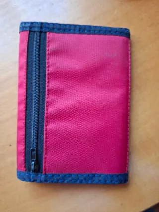 Cartera de la marca Reebok con un diseño moderno. - Color principal rojo. - Ribetes y detalles en azul. - Logo de Reebok bordado en blanco. - Pequeño logo deportivo en la solapa. Cerrada 9,5x13cm