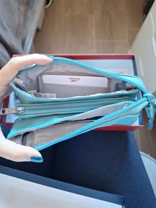 Monedero de la marca Reebok en un bonito color azul claro. Viene presentado en su caja original. - Diseño con el logo de Reebok. - Cierre de cremallera. - Incluye etiqueta.