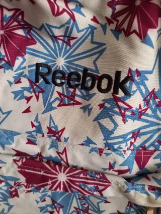 Mochila de la marca Reebok con un diseño llamativo de estrellas. Solo falta la b del asa - Estampado de estrellas en tonos rojos y azules sobre fondo blanco. - Cierre principal con cremallera. - Bolsillo frontal con cremallera. - Correas ajustables para los hombros.