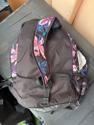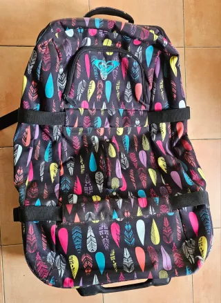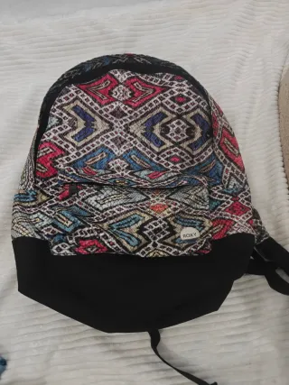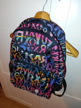 Mochila Roxy original, amplia y muy cómoda, ideal para colegio, instituto o uso diario. ✔️ Varias cremalleras y compartimentos ✔️ Todas las cremalleras funcionan perfectamente ✔️ Espalda y tirantes acolchados ✔️ Diseño juvenil y llamativo 🔹 Estado: usada en buen estado general 🔹 Detalle a tener en cuenta: – Le falta el tirador de una cremallera (solo estético, se abre y cierra sin problema) – Pequeño desgaste en la parte inferior por el uso (ver fotos) Precio ajustado al estado. Entrega en mano o envío por Wallapop.