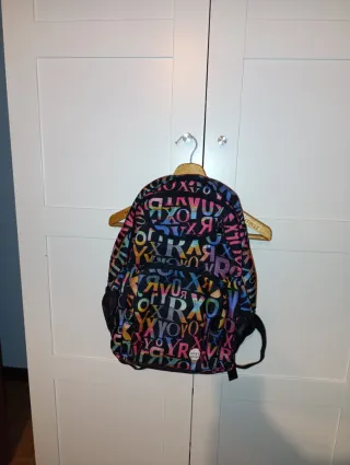 Mochila Roxy con un diseño llamativo y vibrante. - Estampado de letras multicolor sobre fondo negro. - Compartimento principal espacioso. - Bolsillo frontal con cremallera. - Bolsillos laterales de malla. Negociable