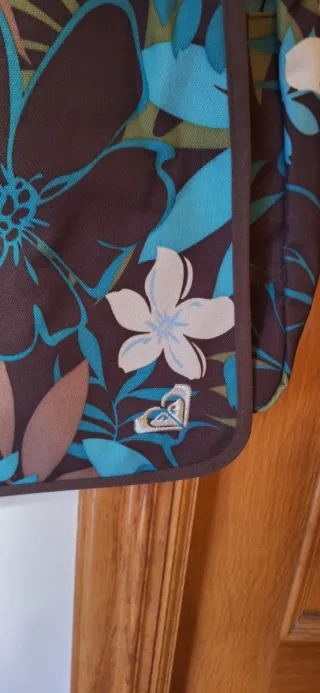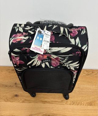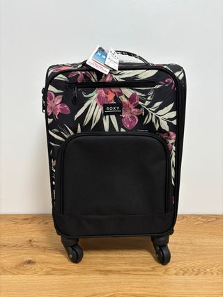Maleta de viaje con un llamativo estampado floral. - Diseño con flores y hojas en tonos vibrantes sobre fondo negro. - Etiqueta de la marca Roxy. - Cremallera lateral para acceso.