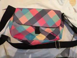 Bandolera de la marca Roxy con un diseño a cuadros vibrante. - Estampado a cuadros multicolor. - Correa ajustable. - Cierre de solapa con velcro. - Dos compartimentos, el de dentro con cremallera. - Medidas 32x44x8
