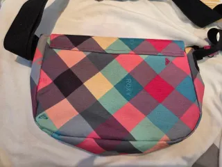 Bolso con un diseño de cuadros vibrante y llamativo. - Correa ajustable para mayor comodidad. - Cierre de solapa con hebilla. - Logo de Roxy visible en la parte frontal.
