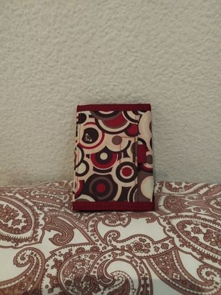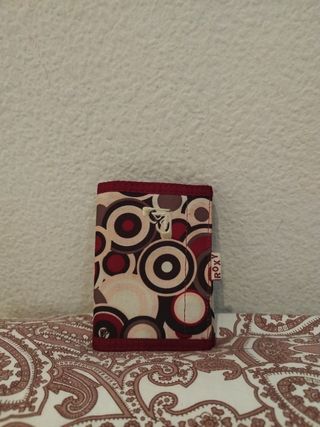 Monedero de Roxy, con varios compartimentos en tonos burdeos y rosas
