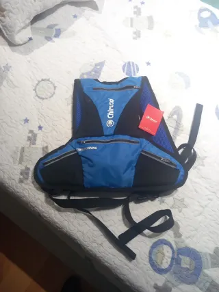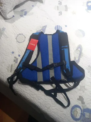 Mochila de hidratación para actividades deportivas, trail running. Un único uso, como nueva. - Capacidad de 5 litros. - Diseño en color azul y negro. - Cierre ajustable con cordón. #trail #running #fitness #sport #run