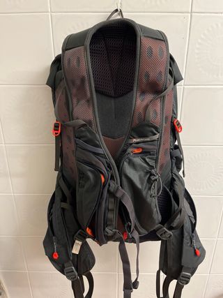 Mochila de 22 litros extensible (+3) Muy poco usada Es polivalente y multideporte, running, mountain bike, trekking, escalada... Tejido: Diamond HD Espalda con sistema «Dry Net System» (DNS), la malla permite transpiración, el bastidor de acero flexible optimiza la distribución de la carga y la estabilidad Bolsillos: laterales de rejilla; de seguridad; frontal; en el cinturón Bolsillo para el sistema de hidratación Portacasco extraíble Ojal posterior para lámpara de seguridad Bandas reflectantes Sistema de compresión lateral Cierre pectoral con silbato integrado Funda incluida Peso: 900 g