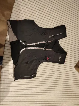 Chaleco portaobjetos IPSO, ideal para rutas en moto o bici. Está en buen estado. - Diseño ligero y cómodo. - Bolsillos con cremallera. - Correas ajustables.