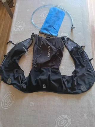 Mochila de hidratación ideal para tus carreras de trail running. Le falta la bolsa de agua, ya que estaba usada. - Diseño ligero y cómodo. - Compartimento principal con cremallera. - Correas ajustables para un ajuste personalizado.