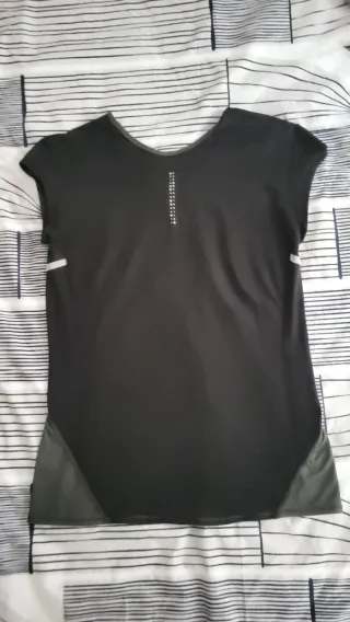 Camiseta deportiva para mujer, ideal para todo tipo de entrenamientos. NUEVA. - Diseño con paneles en contraste reflectantes por si se quiere salir de noche. - Rejilla de ventilación ideal por si se usan mochilas o temporadas de calor. Uso ideal para aire libre en verano para running, senderismo, fitnes, etc... Valorada en 15€