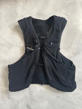 Chaleco riñonera Salomon para trail running, en buen estado. - Ideal para llevar hidratación y objetos pequeños durante tus carreras. - Talla S. - Diseño ligero y cómodo.