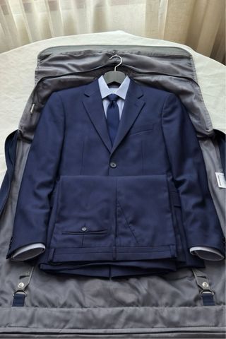 Vendo porta trajes original Samsonite en color azul marino con interior gris. Ideal para transportar traje sin que se arrugue. Perfecto para viajes, eventos, bodas o viajes de trabajo. ✔️ Marca Samsonite ✔️ Sistema plegable compacto ✔️ Interior con sujeciones para mantener el traje en su sitio ✔️ Bolsillo interior con cremallera ✔️ Cierre exterior con cremallera resistente ✔️ Asa cómoda para transporte Estado: muy buen estado. Se entrega limpio y listo para usar. Perfecto para guardar traje, americana, camisa o ropa formal sin que se arrugue. Se puede enviar por Wallapop o entrega en mano.